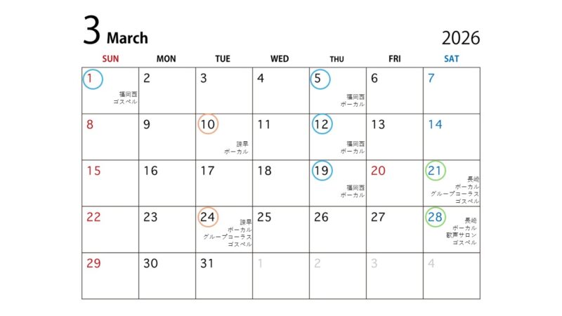 福岡西校 ボーカルグループレッスン、ゴスペルレッスンボーカル&ゴスペルの生徒として、17年を先生や仲間と共に過ごしています。